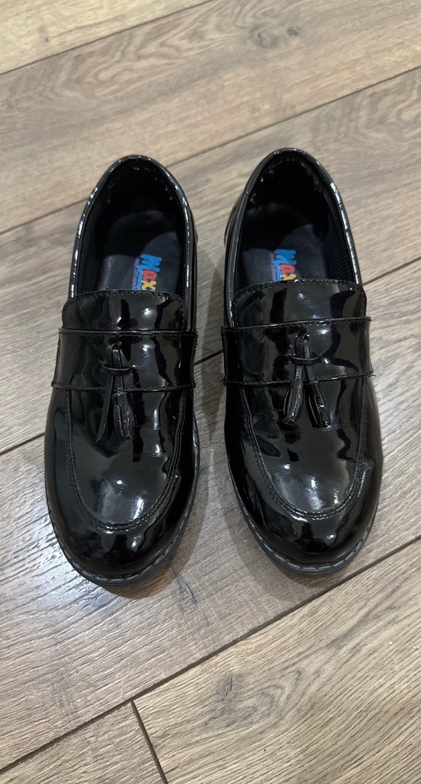 Parlak siyah, püskül detaylı erkek çocuk klasik ayakkabı. 1 kere düğünde kullanıldı.sadece 1 püsküllü kopmuş başka kusuru yoktur temiz ürün