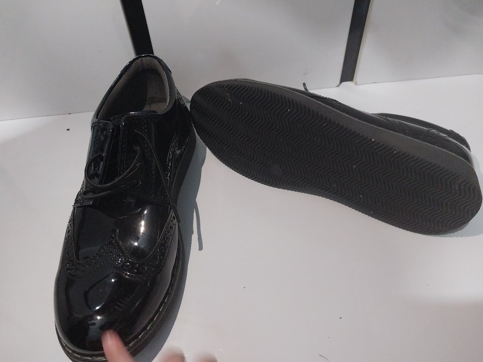 Parlak siyah, düz tabanlı lastik özel gün erkek çocuk ayakkabısı, şık gotik tarzıyla modaya uygun görünüyor. ✨düğünde bir iki saat kadar giyildi yeni sayılır...