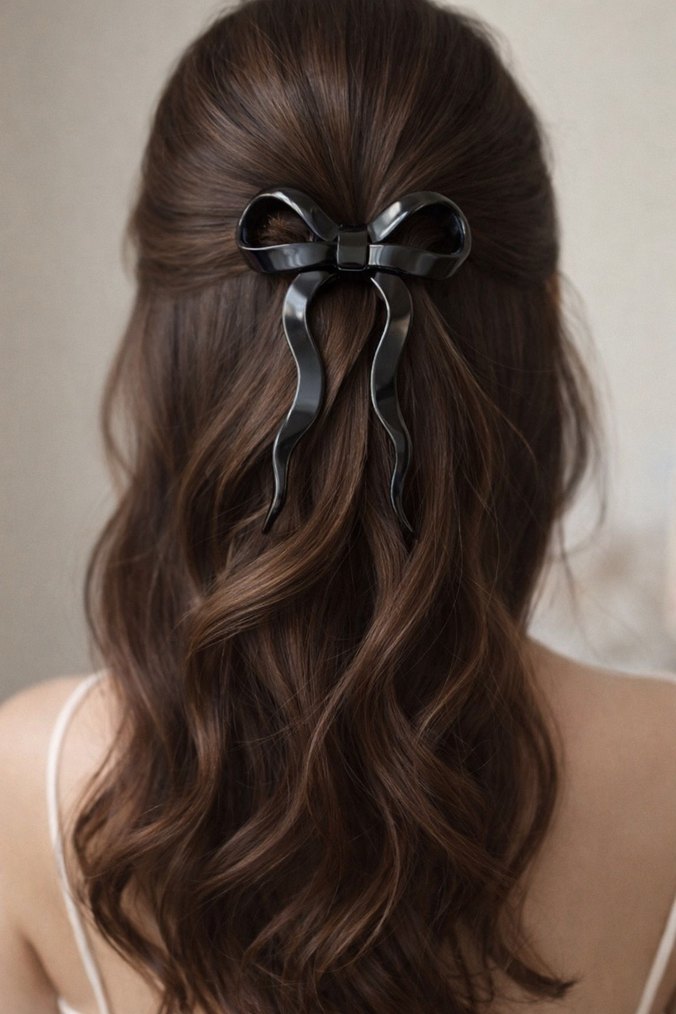 Parlak Siyah Fiyonk Saç Tokası