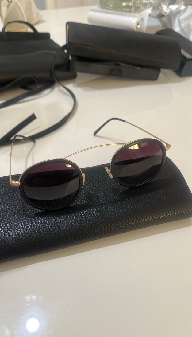 Parlak siyah renkte, ince metal çerçeveli kadın güneş gözlüğü. Klasik ve çağdaş tasarımıyla zamansız bir şıklık sunar. ️ Mağaza teşhir ürünü