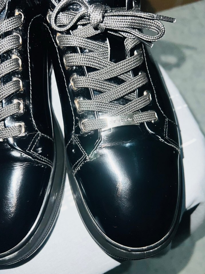 Gotik tarz için parlak siyah erkek ayakkabı bağcığı, ayakkabılara güçlü bir görünüm katar.