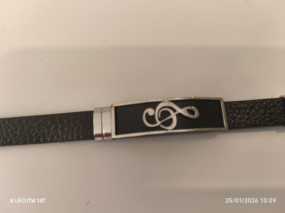Parlak siyah bant ve minimalist gümüş gotik tasarıma sahip erkek bileklik, sade ve şık bir görünüme sahiptir.