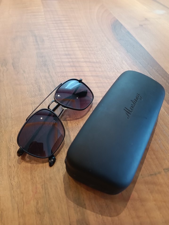 Parlak siyah renkte, minimalist biker tarzı güneş gözlüğü. Trendy casual görünüm için uygun ve koruyucu kutu ile birlikte.