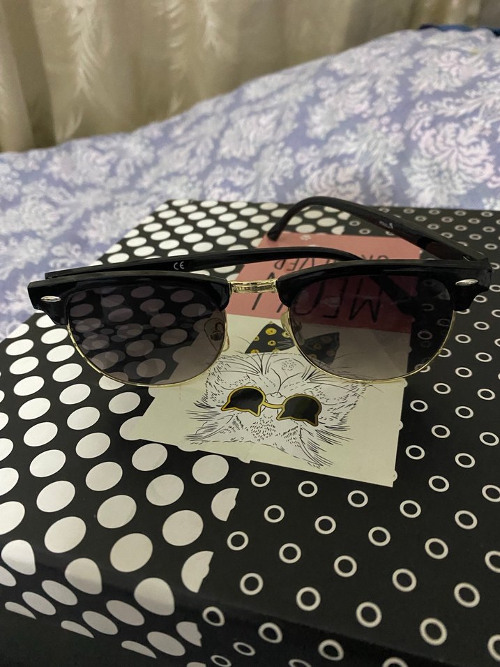 Parlak siyah yarım çerçeveli kadın güneş gözlüğü, bohem ve karşı kültür tarzına uygun. ️