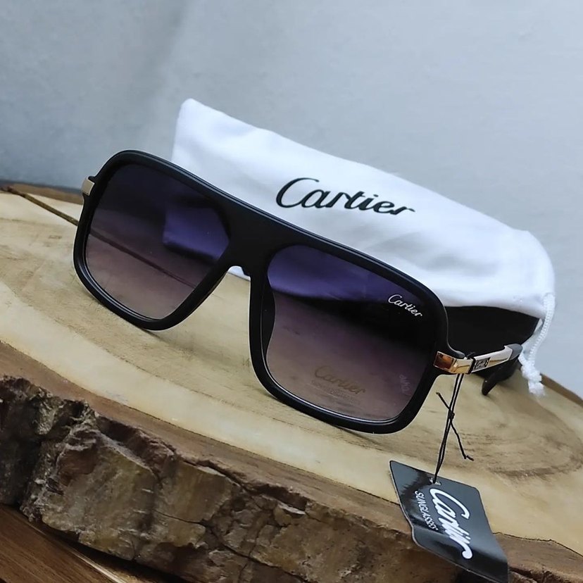 Parlak siyah Cartier güneş gözlüğü, klasik sokak stiliyle trend bir görünüm sunar. Koyu renkli camları göz koruması sağlar. ️