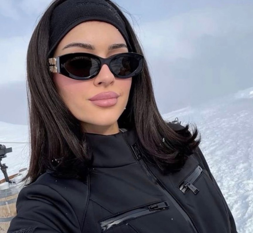 Parlak siyah renkte, cesur sokak stili için tasarlanmış kadın güneş gözlüğü, yanlarında dekoratif detaylar bulunur.️