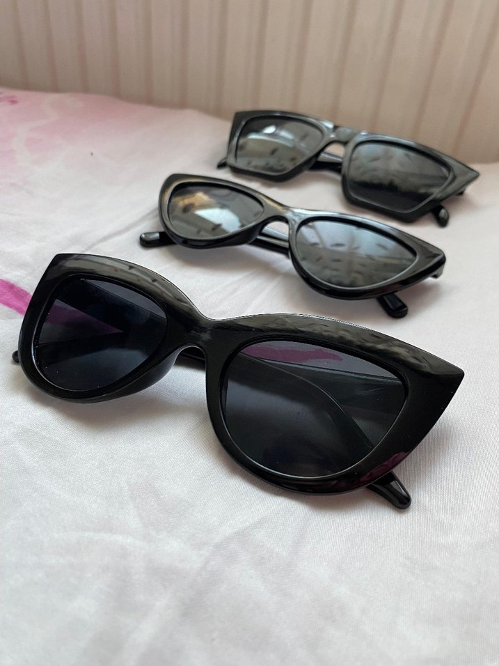 Parlak siyah,kedi gözü şekline sahip kadın güneş gözlüğü, bohem ve retro Paris tarzını yansıtıyor. ️tek almak isterseniz ilan açarım