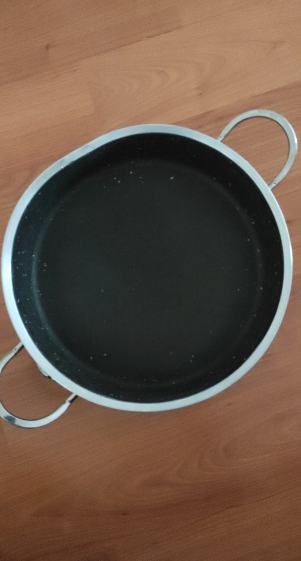 Parlak siyah renkli, iki metal kulplu ve pürüzsüz yüzeyli tencere, farklı yemek pişirme ihtiyaçlarına uygundur.