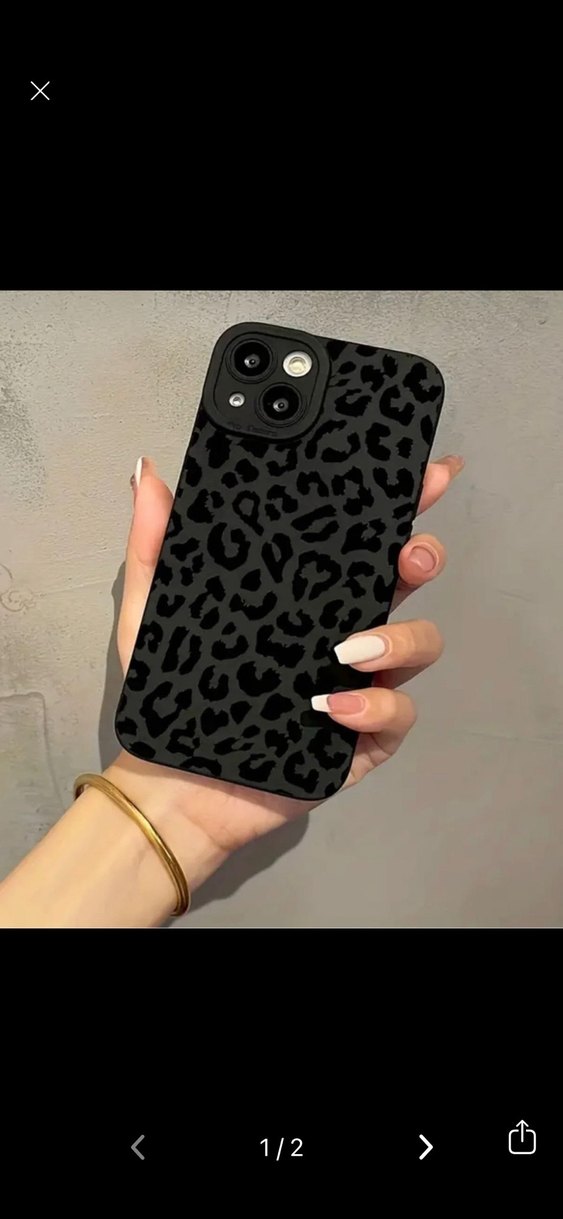 Parlak yüzeye sahip, koyu siyah leopar desenli ve streetwear tarzında telefon kılıfı.