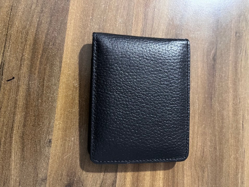 Parlak siyah renkte, minimalist ve klasik tasarıma sahip erkek cüzdanı. Desensiz ve sade, temel ve kullanışlı bir stildir.