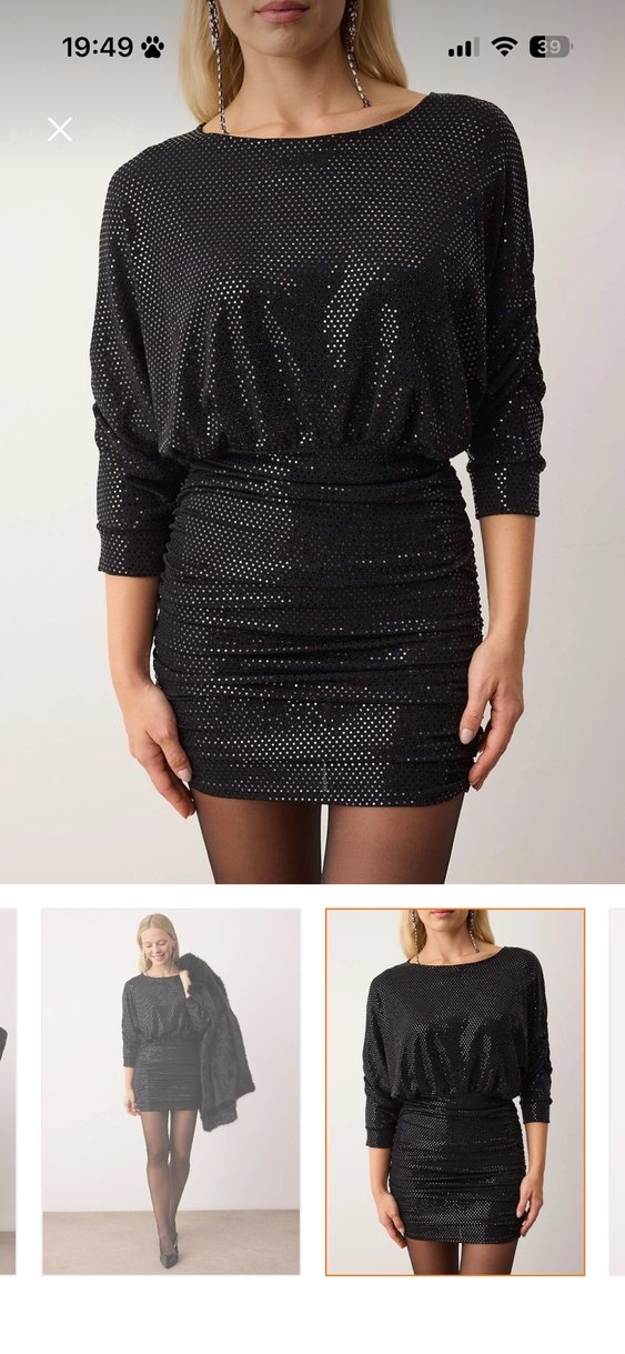 Düz yaka, parlak pullu ve yılan desenli siyah mini elbise, cesur ve göz alıcı parti tarzı için uygundur. ✨