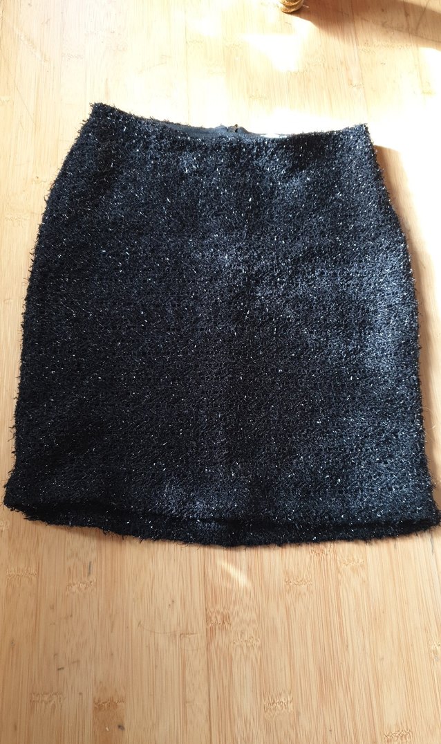 Parlak siyah renkli, örgü dokulu ve dar kesim mini etek. Gotik tarzıyla romantik akşamlar için uygun.