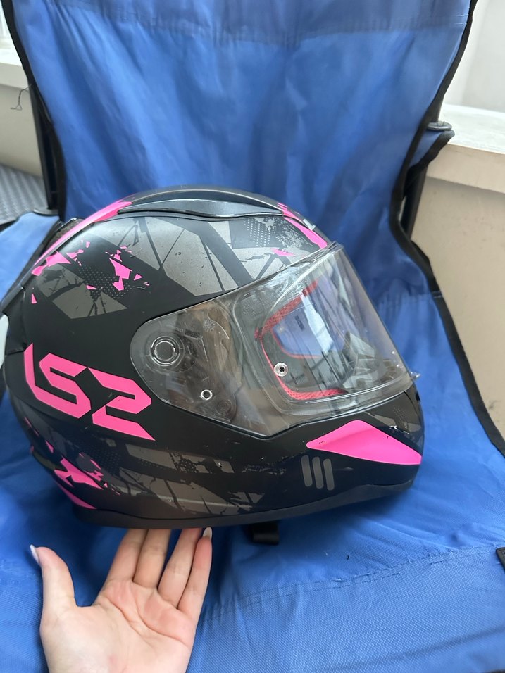 Parlak siyah-pembe baskılı grunge punk desenli biker motosiklet kaskı. Dayanıklı plastikten, şeffaf vizörlü ve koyu canlı renklidir. ️