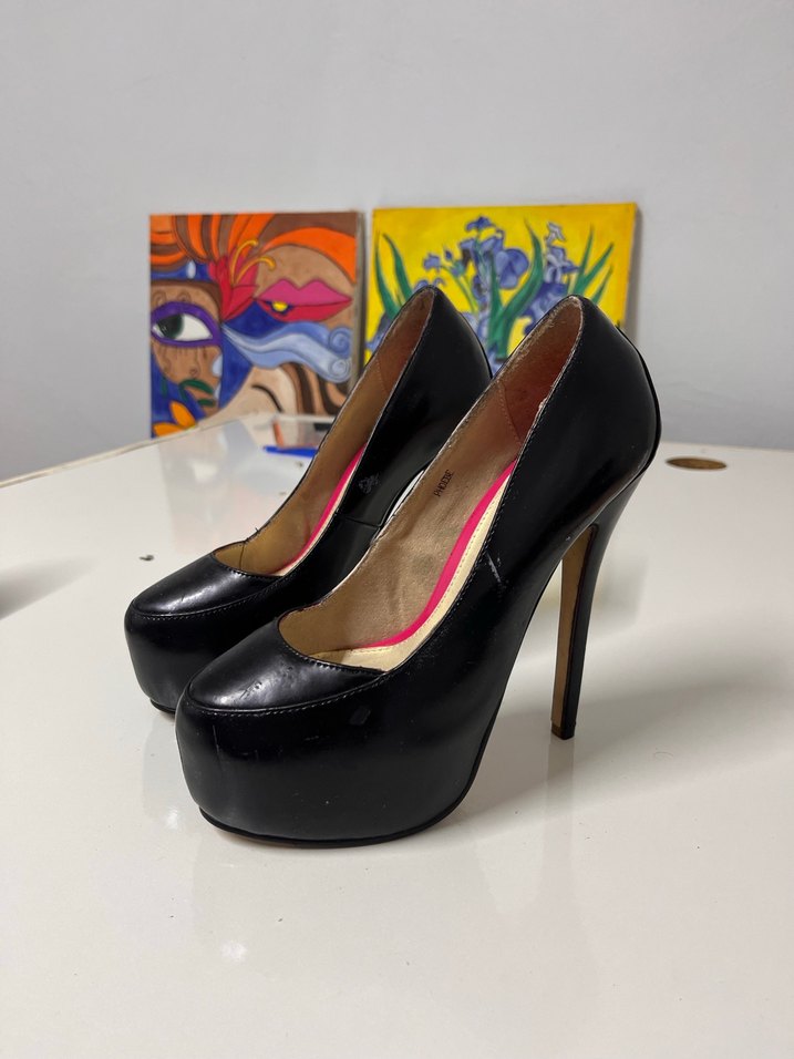 Parlak Siyah Platform Topuklu Kadın ayakkabı