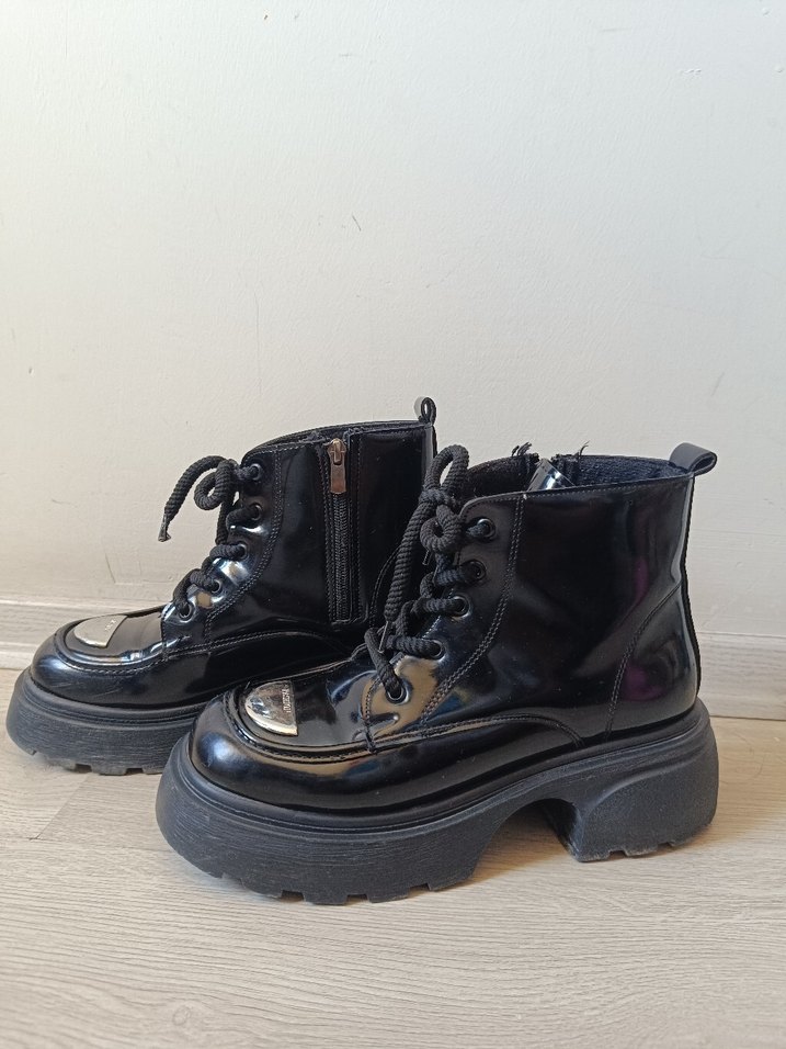 Parlak siyah su geçirmez bot. Zincir ve bağıcıklı az kullanılmıştır,içinde sürtünmeden dolayı oluşan tüylenme vardır.