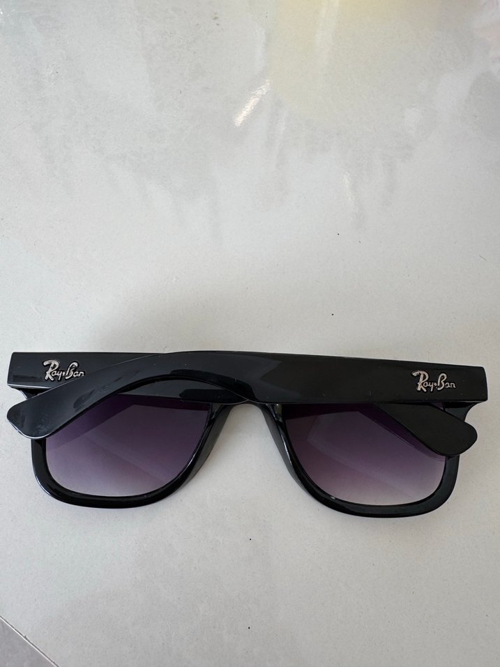 Parlak siyah çerçeveli, koyu renkli camlı Ray-Ban kadın güneş gözlüğü, minimalist ve sokak stiliyle uyumlu, rock punk havası taşır. ️