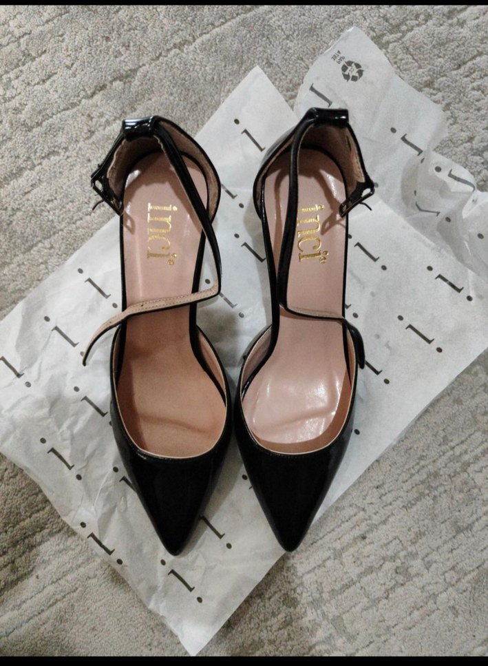 Parlak siyah, rugan stiletto topuklu ayakkabılar, Hiç kullanmadım. Kutusunda ve etiketi üzerinde.