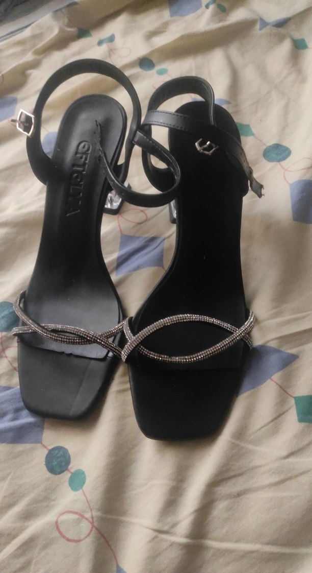 Parlak siyah yılan desenli, tokalı bantlı ve kauçuk malzemeden yapılmış stiletto topuklu kadın abiye ayakkabı. Romantik akşamlar ve şık sokak tarzı için uygun.