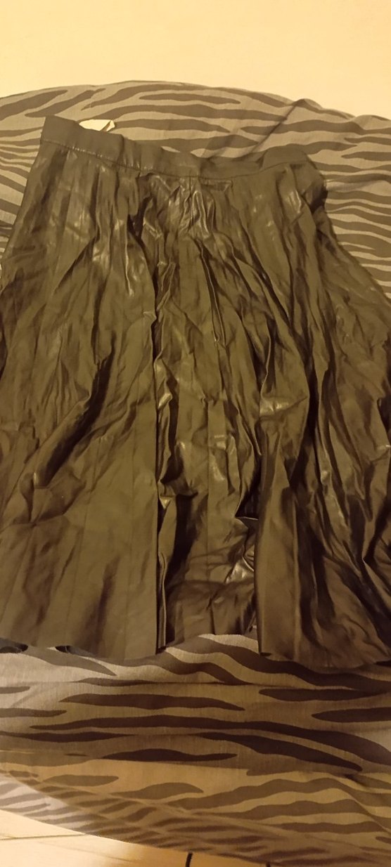 Deri kumaştan bol kesim uzun etek. Avant-garde ve gotik tarzlar için uygun, partiye yakışır. ✨
