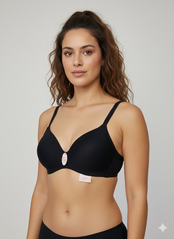 Parlak siyah renkli, minimalist ve çağdaş tasarımlı, normal boyda ve desensiz sütyen. Çeşitli bedenleri mevcuttur. C cup. #biricikicgiyim #sütyen #sutyen #siyahsütyen #telsizsütyen #dolgusuzsütyen