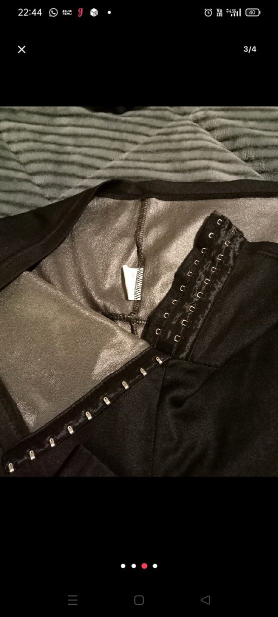 Parlak siyah renkte, normal boy uzunluğunda, desen içermeyen, sıkı oturan termal korsesidir. Güvenli kapanış için kanca detayları bulunur.