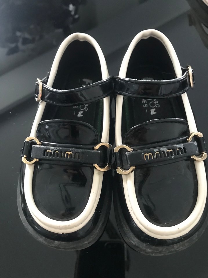 Parlak siyah, tokalı ve lastik tabanlı erkek çocuk ayakkabısı. Goth tarzında, desensiz ve modaya uygun.