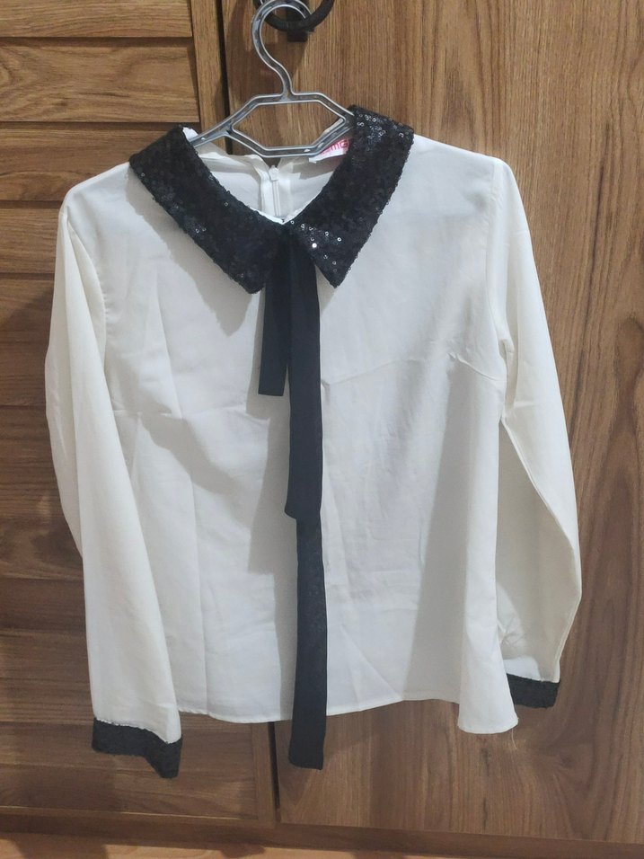 Parlak Siyah Yaka Detaylı Beyaz Kadın Gömlek