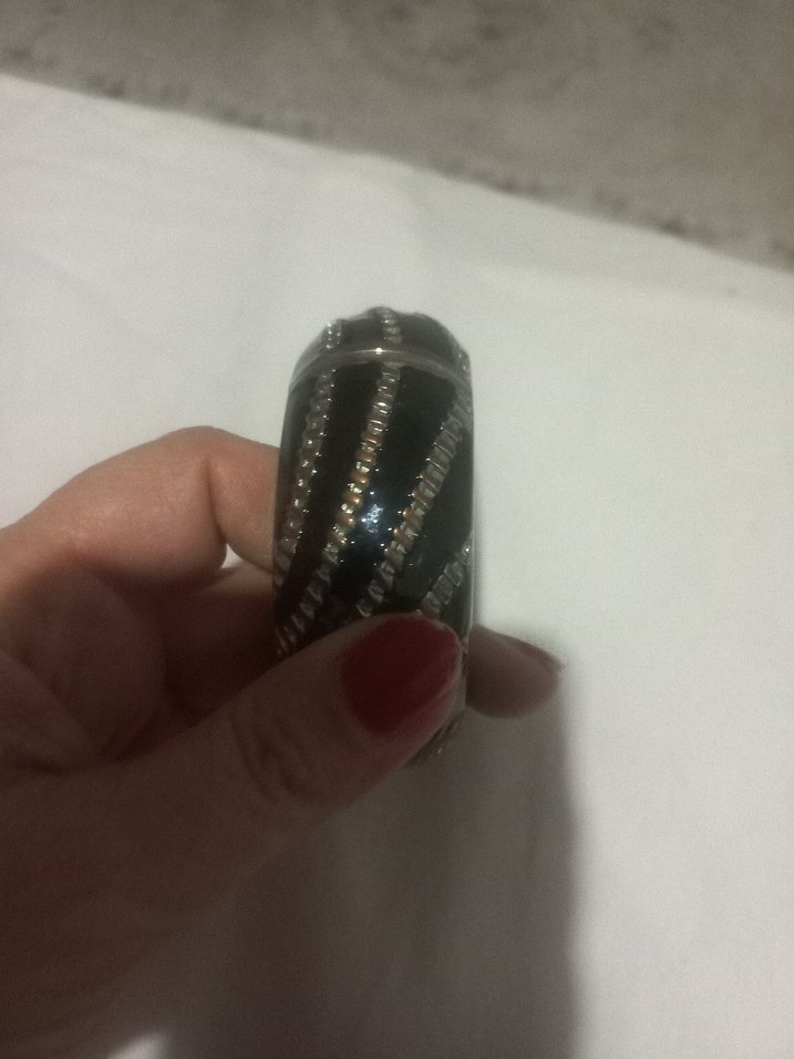 Parlak payetli ve yılan desenli siyah bileklik, rock punk tarzını yansıtıyor. Romantik akşamlar için uygun.