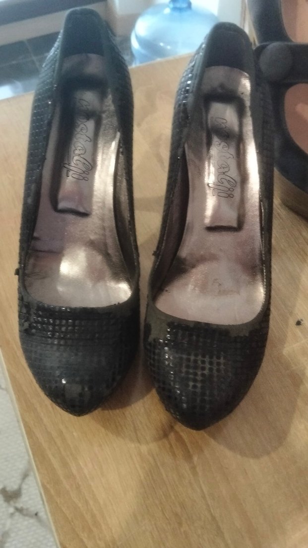 Parlak yılan desenli, tokalı siyah platform topuklu kadın ayakkabısı, gotik tarzda romantik akşamlar için uygun. 36 numara 1 kez kullanıldı kutusunda durduğu için deri kısımları dökülme vardır az