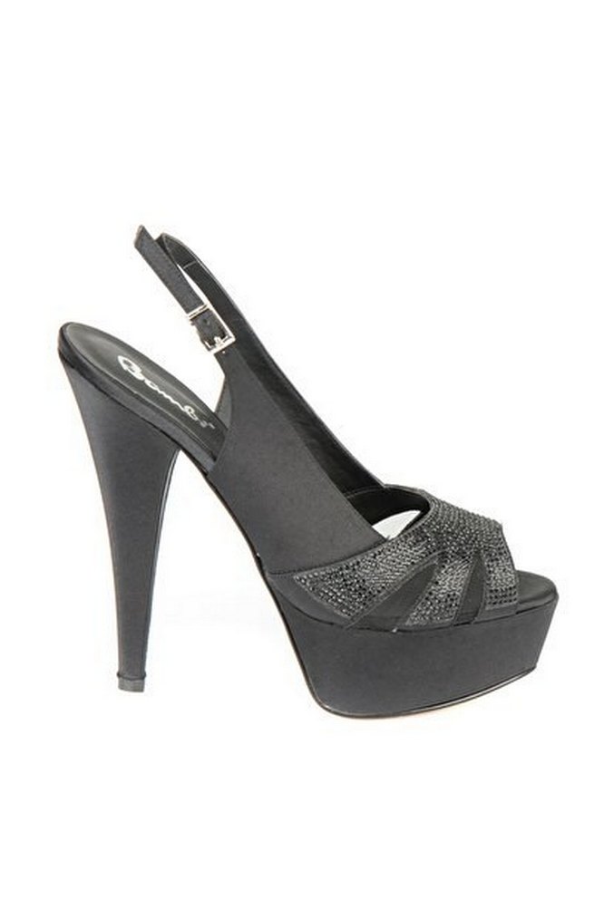 Parlak desenli, tokalı bantlı siyah platform topuklu kadın ayakkabısı #dolgutopuk #platformtopuk