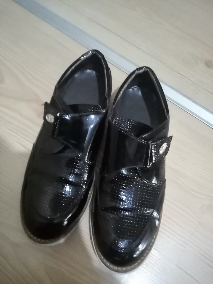 Parlak siyah yılan desenli, tokalı, kauçuk malzemeden yapılmış erkek özel gün ayakkabısı, goth tarzına uygun 38 numara takım elbise kundurası çok hafif kullanışı çok rahat 14 yaşındaki oğluma almışım küçülmüş Bu yüzden satışa koydum 38 numara çocukta bulamadığım için 37 yazdım 37 38'e rahatlıkla olur