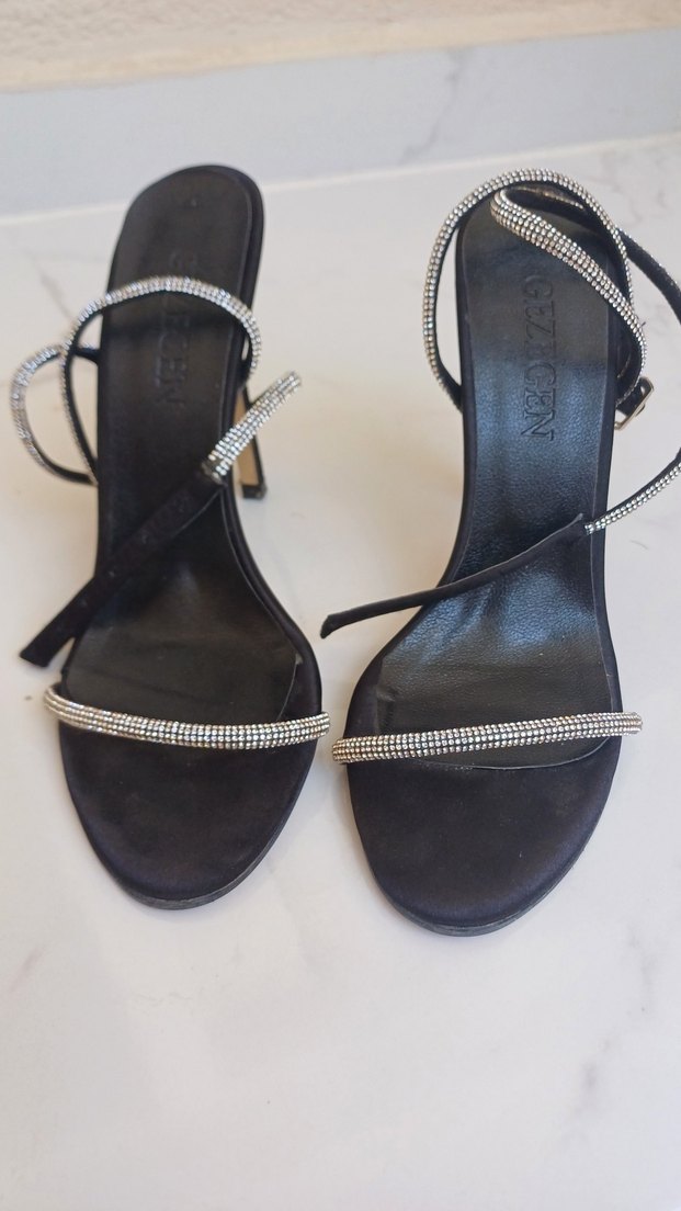 Parlak yılan desenli siyah stiletto topuklu ayakkabılar, tokalı bantlarla romantik gece için uygundur. Kauçuk malzeme rahatlık sağlar. özel üretim