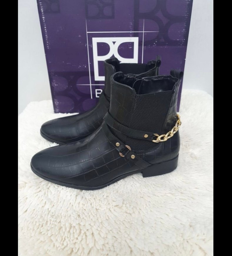 Parlak Siyah Yılan Desenli Zincirli Kadın Bot