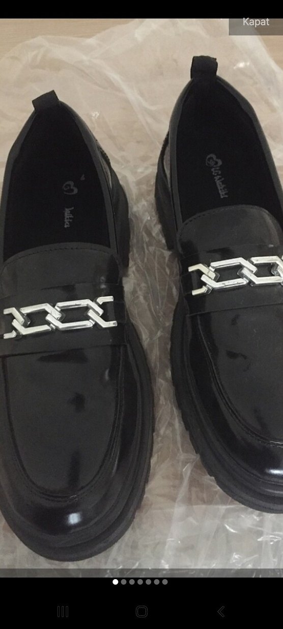 Parlak siyah yılan desenli, zincir detaylı ve topuklu kauçuk loafer ayakkabı. Ofis için uygun, trend goth tarzında kadın loafer.