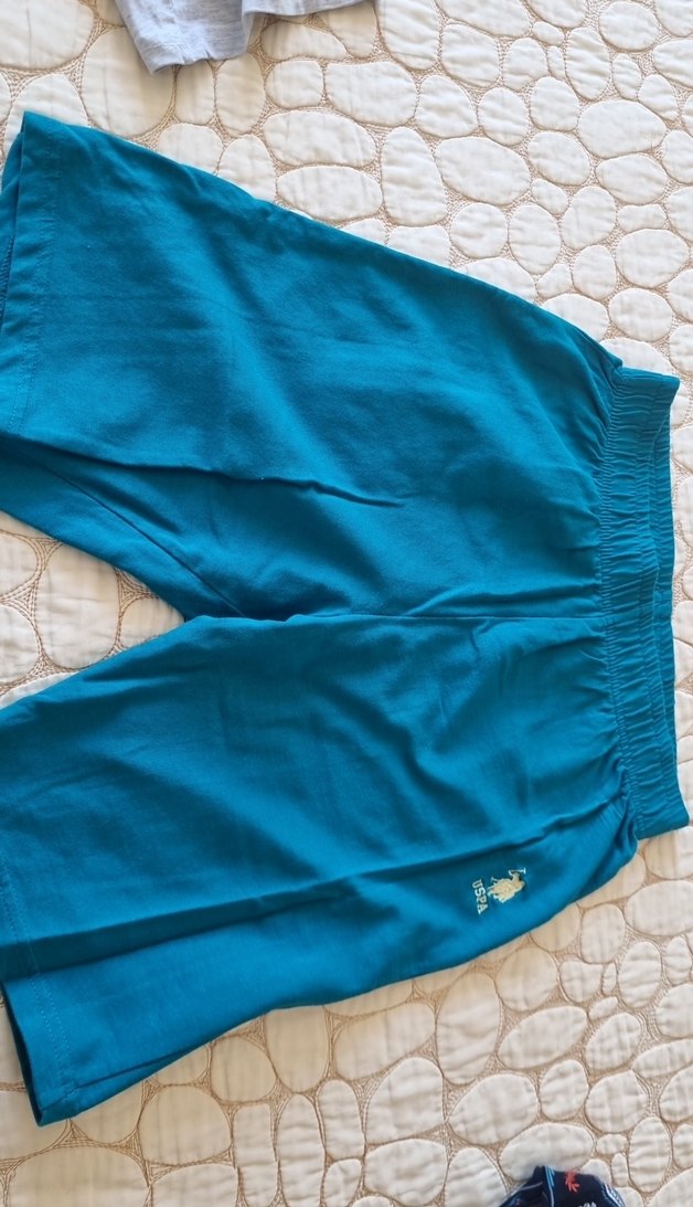 Parlak su yeşili renkte, kısa kesim, yumuşak kumaşlı erkek çocuk spor şortu. Cepsiz, sportif sokak tarzı bulunur. 14-15 yaş