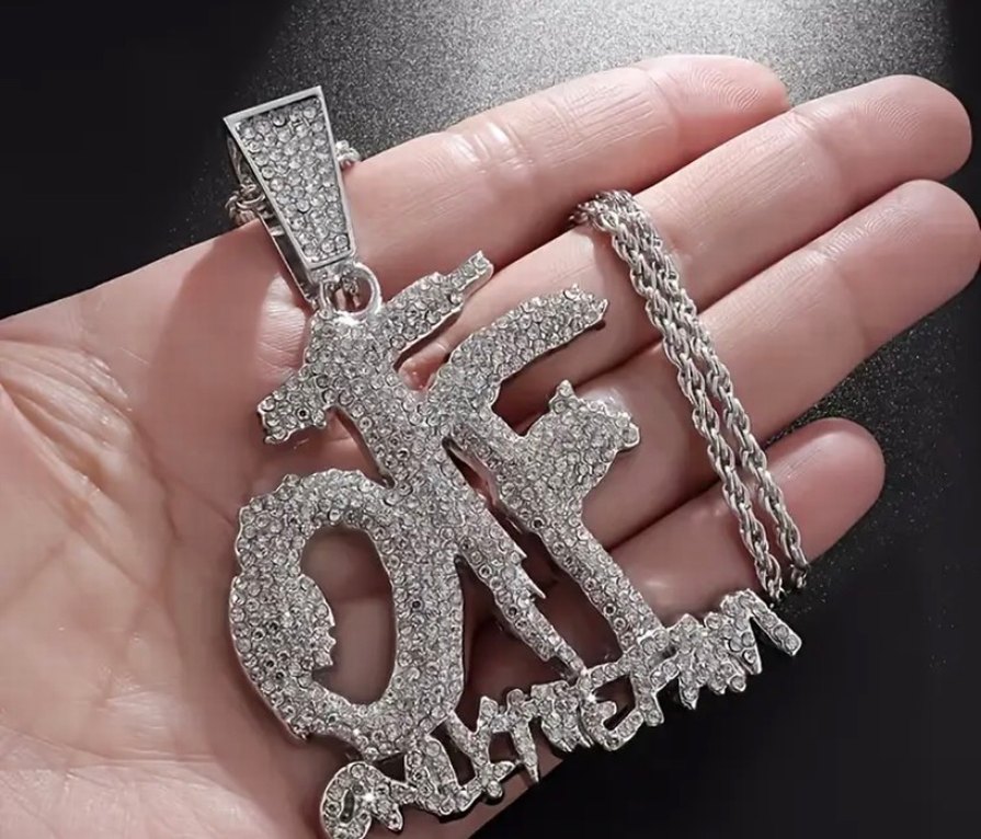 Parlak taşlarla kaplı, cesur rock punk tarzında sokak modası kolyesi.