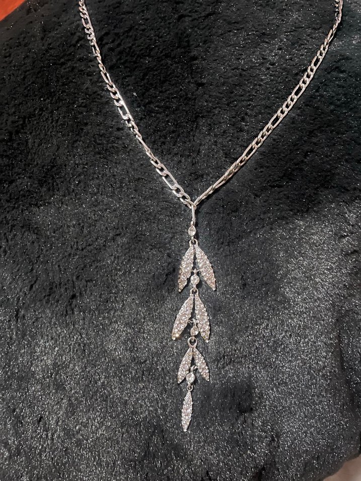 60 cm zincir çevresi, çelik uzun parlak taşlı kolye