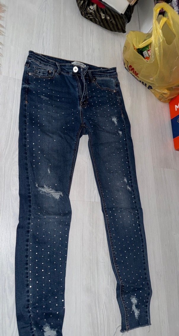 Parlak Taşlı Mavi Skinny Denim Pantolon