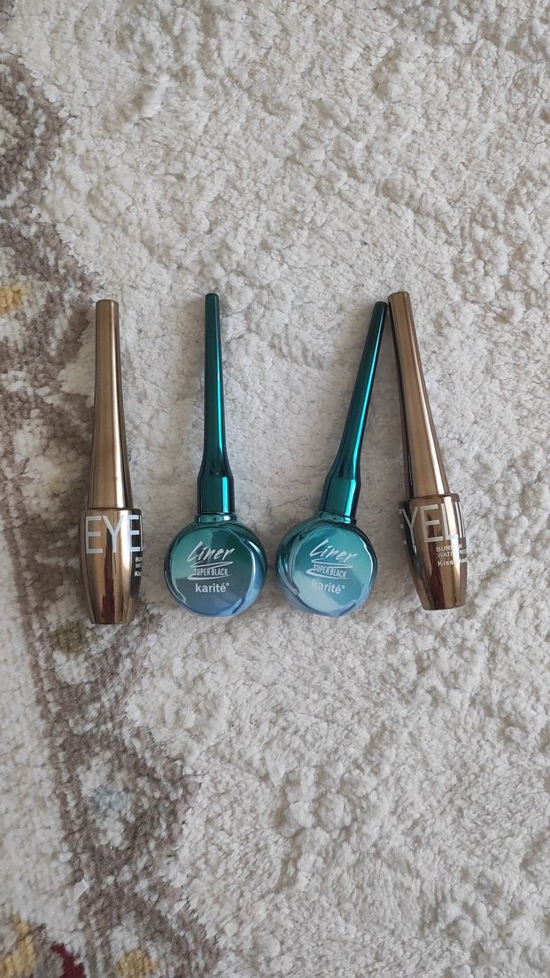 Parlak turkuaz renkli eyeliner ve göz kalemleri, hassas uygulama için şık ambalajda sunulmuştur. Canlı göz makyajları için uygundur.