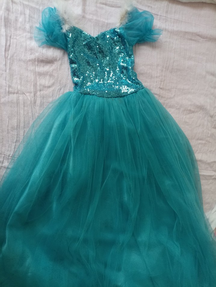 Parlak turkuaz ışıltılı straplez, kolsuz kız çocuk abiye elbise, sentetik kumaştan, şık ve trend bir görünüm sağlar. ✨