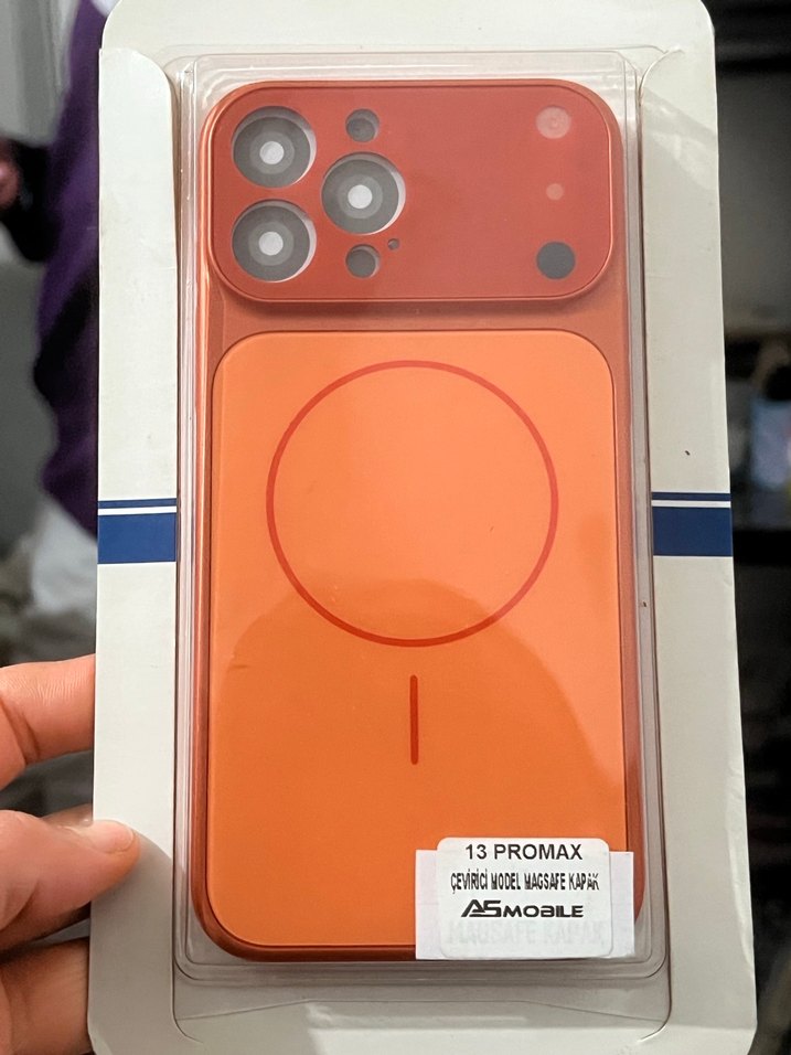 Parlak koyu turuncu renkte, 13 Pro Max için ASMobile marka telefon kılıfı. Düz ve sade normcore tarzındadır.