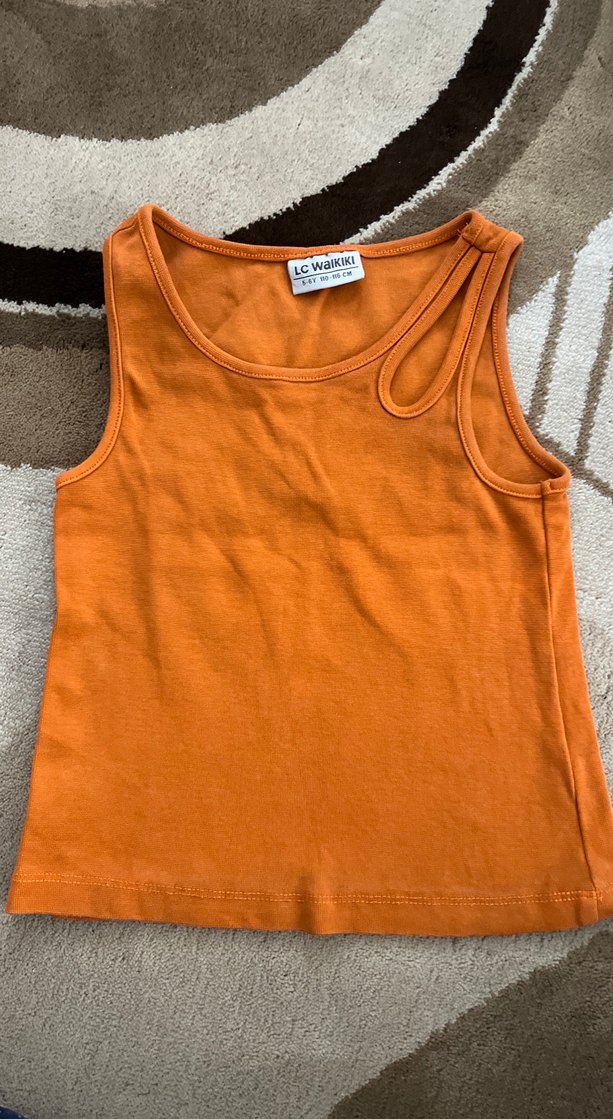 LC Waikiki markalı, tek omuzda çift askılı detaylı parlak turuncu çocuk atlet.