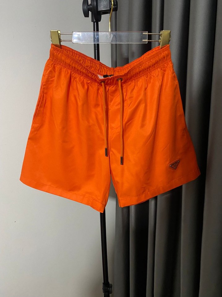 Parlak turuncu renkte, mini boy ve dar kesim erkek şort. Rahat ve şık tasarımıyla dış mekan athleisure tarzına uygundur.