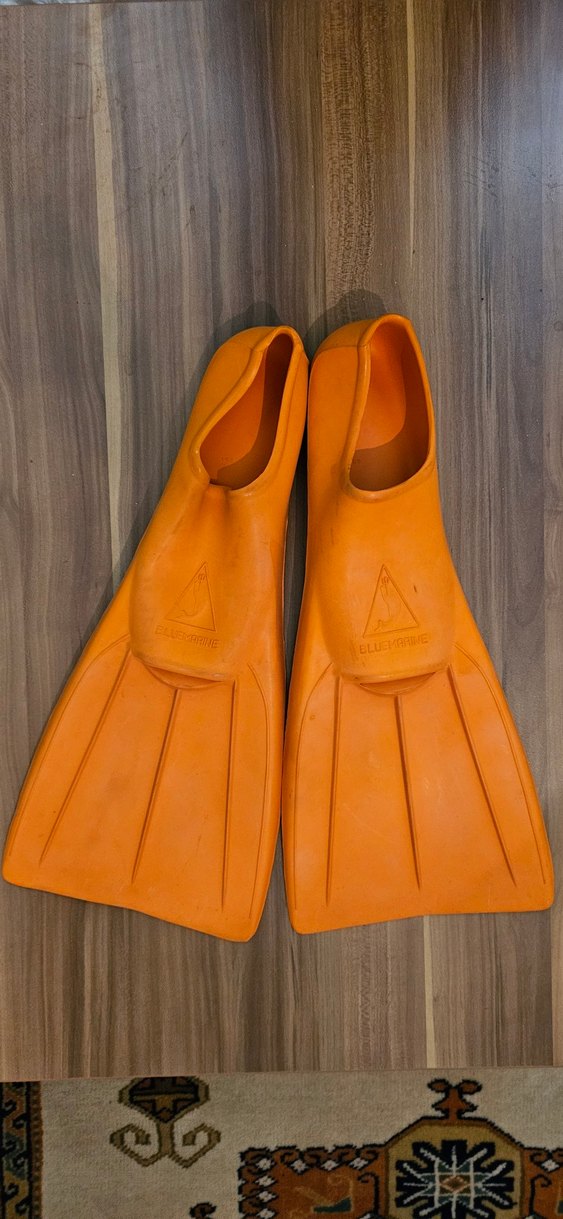 Dayanıklı kauçuktan yapılmış parlak turuncu erkek su paletleri, Nildeniz marka. renk defosu var. Vintage