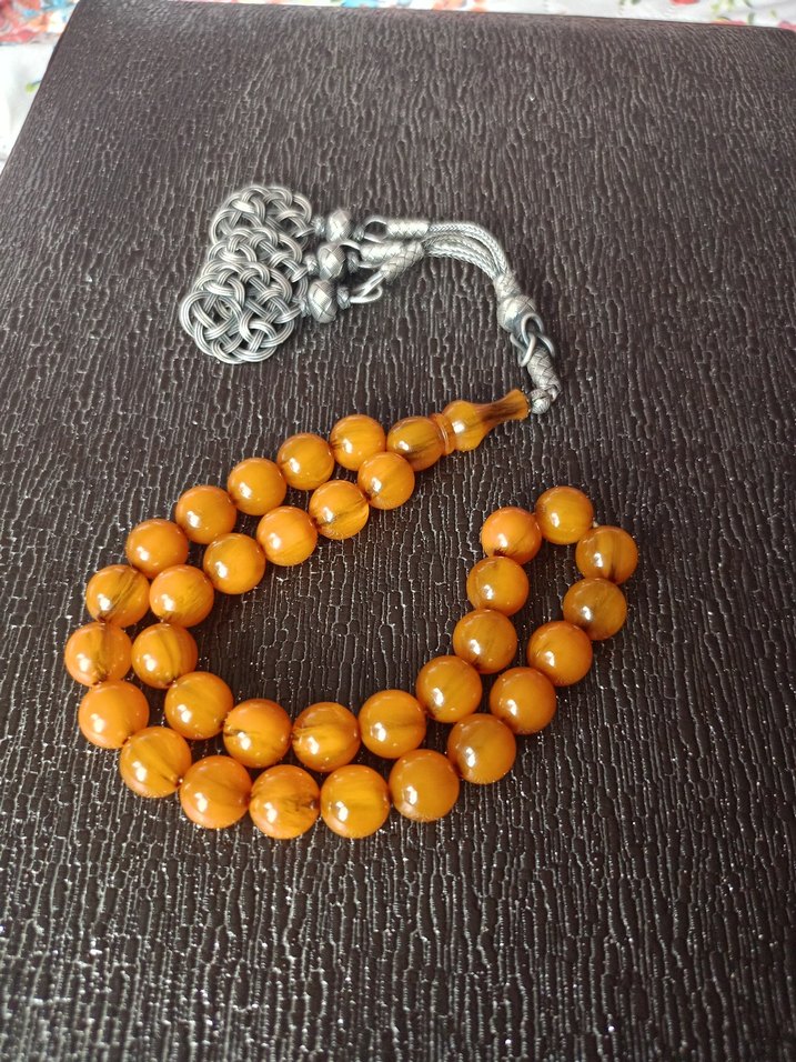 Parlak Turuncu Erkek Tesbih eski Osmanlı sıkma kehribar