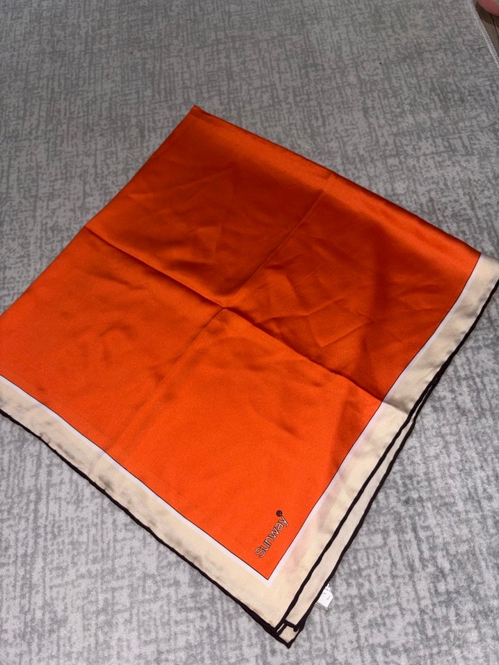 Kadınlar için parlak turuncu ipek görünümlü, drape detaylı, minimal ve çağdaş tarzda fular.