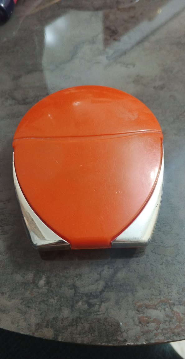 Parlak turuncu renkte, pürüzsüz makyaj uygulaması sağlayan kompakt makyaj aynası.