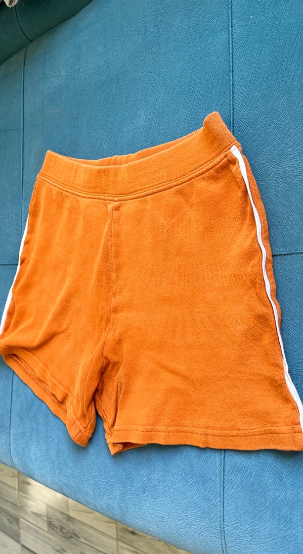Parlak turuncu renkte, yumuşak ve sıcak kumaştan yapılmış, dar kesim mini şort. Beyaz yan çizgileriyle sade tasarıma sahip, spor ve günlük kullanıma uygun.