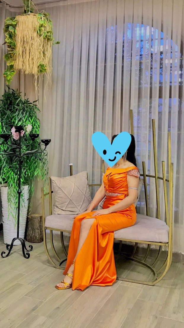 Parlak Turuncu Straplez Uzun Abiye Elbise