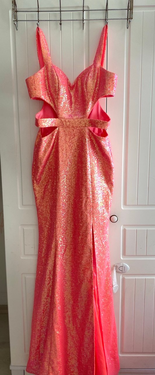 Fuul payet önden yırtmaçlı üst yan dekolte detaylı fuşya arka kuyruk öne göre uzun özel tasarım abiye yalnızca bir defa giyildi